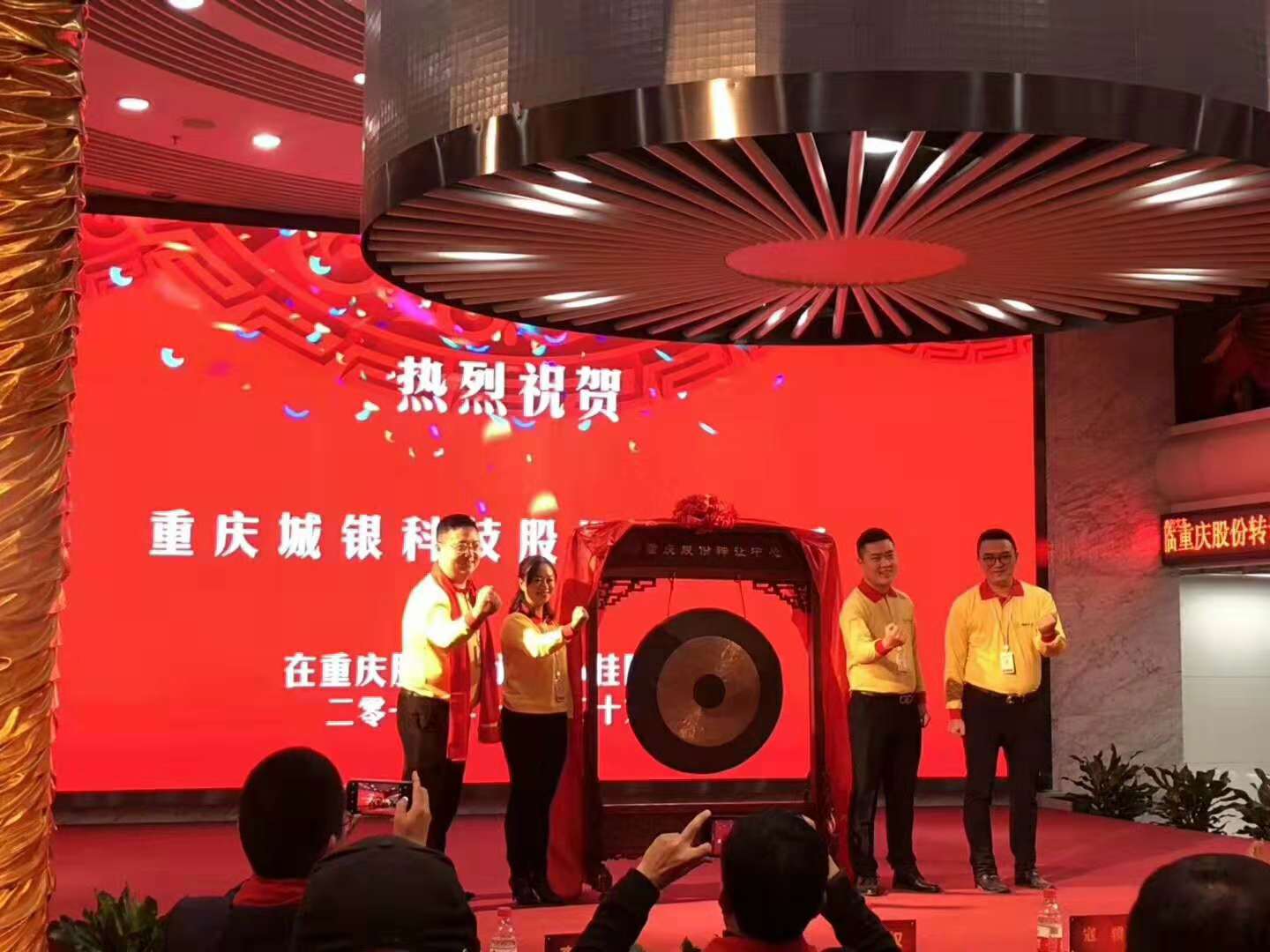PRESS CENTENR2018年(nian)11月29日,這一天對重(zhong)慶城銀(yin)科(ke)技股(gu)(gu)份有限公司意義非凡。當天上午9:58分城銀(yin)科(ke)技在重(zhong)慶股(gu)(gu)份轉讓中心交易大廳(ting)成功舉行了成長(chang)版掛(gua)牌敲(qiao)鐘儀式,股(gu)(gu)票代碼850107。