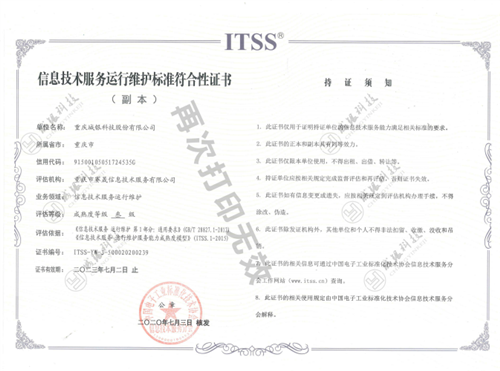 ITSS的認證定(ding)義了城(cheng)銀股份相關服(fu)務人(ren)員、服務過程、服務技術(shu)和(he)服務(wu)資源等信息技術(shu)服務重要組成(cheng)要(yao)素進行了標準(zhun)化、規范化。